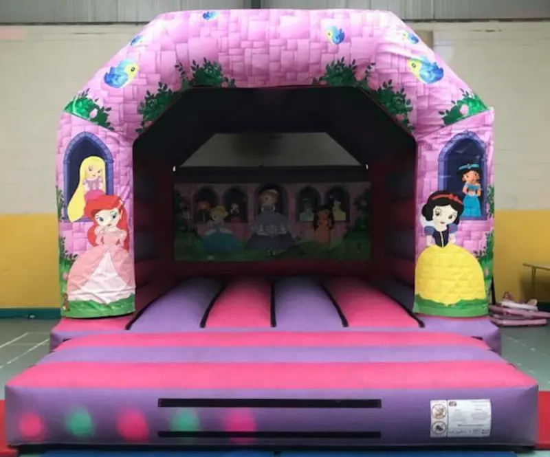 Our most popular size of bouncy castle, suitable for indoor and outdoor hire. With its built in Shower cover / sunshade, it is a perfect choice for all occasions including Birthday Parties, Weddings, Back Garden Hire, Fundays and Corporate Events. With Bright and Colourful artwork, we have over 15 different themed options in this size, themed suitable for boys, girls and also a great selection of unisex themed suitable for both.